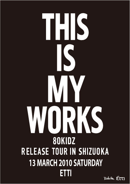 2010/03/12 at 9:42 ![]() W.B.B PRESENTS 『80kidz"THIS IS MY WORKS TOUR 2010" in 豊橋』 □@PARADA EVENT HALL(豊橋) □ 2010. 3.12 (Fri) OPEN/22:00 □ADV/2,000yen DAY/2,500yen ■SPECIAL GUEST ・80kidz(Kidz Rec./KSR) ■DJ SET ・DJ TaYaSe(G.G SKATE) ・DJ FIELD(ROULETTE) ・DJ HIDE(ROULETTE) ・DJ YOU-51(interact) ・DJ KOH-(W.B.B/PARADA PRO) ・DJ SEAMA(W.B.B/PARADA PRO) ・DJ TAKA(W.B.B/PARADA PRO) -------------------------------------------------------------- ◇スペシャル特典◇ 先着30名様限定 ”80kidzオリジナル缶バッジ”プレゼント!! (チケット購入順では無く、入場順での配布となります。予めご了承下さい。) -------------------------------------------------------------- □チケット問合せ ・e+(イープラス) http://eplus.jp [サイトTOPページから、”PARADA”と検索してください。] ・PARADA http://parada-eh.jp □Total Information 有限会社 PARADA PRODUCTION TEL 0532-33-4491 HP http://parada-eh.jp -Special Thanks- Kidz Rec./PARADA EVENT HALL -Supported by- PARADA PRODUCTION ======================================================= ![]() 80kidz"THIS IS MY WORKS"RELEASE TOUR in 静岡 3/13(sat) @ETTI open22:00 close5:00 adv2500yen with MIXCD adm3000yen ※adv(前売り)チケット購入者にはもれなくMIXCDが付きますCD ■special guest 80kidz ■support dj ACO / DJ OSUMIX / DJ SIHGe / MIHARA KEISUKE MAATEA / KOSUKE OSADA(FAR EAST NETWORK) ■photographer yukky / KT / core ■ticket info 危険・警告店頭販売は2/20(sat)から開始 ETTI 054-254-7316 FREAKY SHOW 054-273-8699 CANAANE 054-251-2955 お近くにチケット取扱店が無い場合等は http://mixi.jp/show_profile.pl?id=26376466 宛にお気軽にメッセージ下さい。 ■infomationmail to http://mixi.jp/show_profile.pl?id=26376466 ※ご質問等お気軽にメッセージください ETTI 静岡県静岡市葵区紺屋町12-1ドンキホーテビル6F TEL: 054-254-7316 WEB: http://etti.jp |